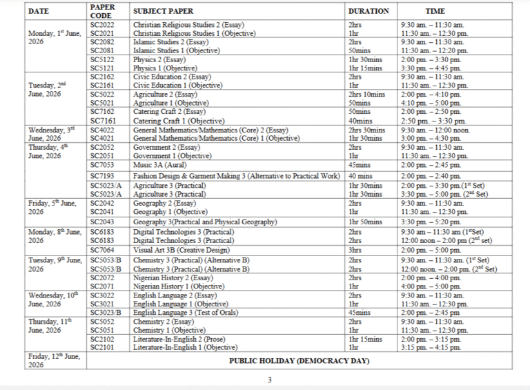 The council’s release of the timetable provides candidates, schools, and stakeholders with a structured guide to prepare effectively for the upcoming examination season.